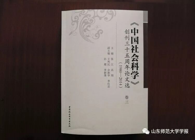 今年是《中国社会科学》创刊35周年。为此,中国社会科学出版社编辑出版了《中国社会科学》创刊三十五周年论文选(1980-2014)以作纪念。其中“文学·语言学”栏目中共选入18篇文章,曾在《山东师范大学学报(人文社会科学版)》发表论文的杨义等五位学者的6篇文章包括在内,占该栏目总选文量的三分之一。