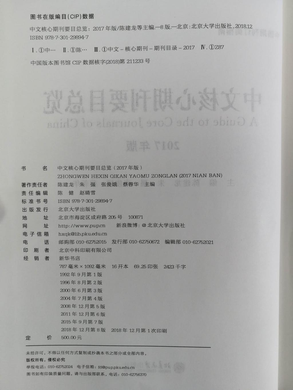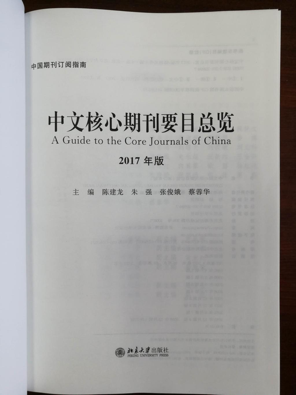 《中文核心期刊要目总览》2017年版